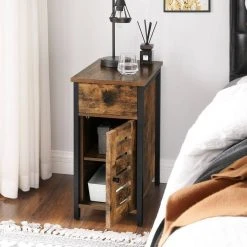 VASAGLE Nachtschrank »LET063B01« Beistelltisch mit Lamellentür, Industrie-Design, vintage