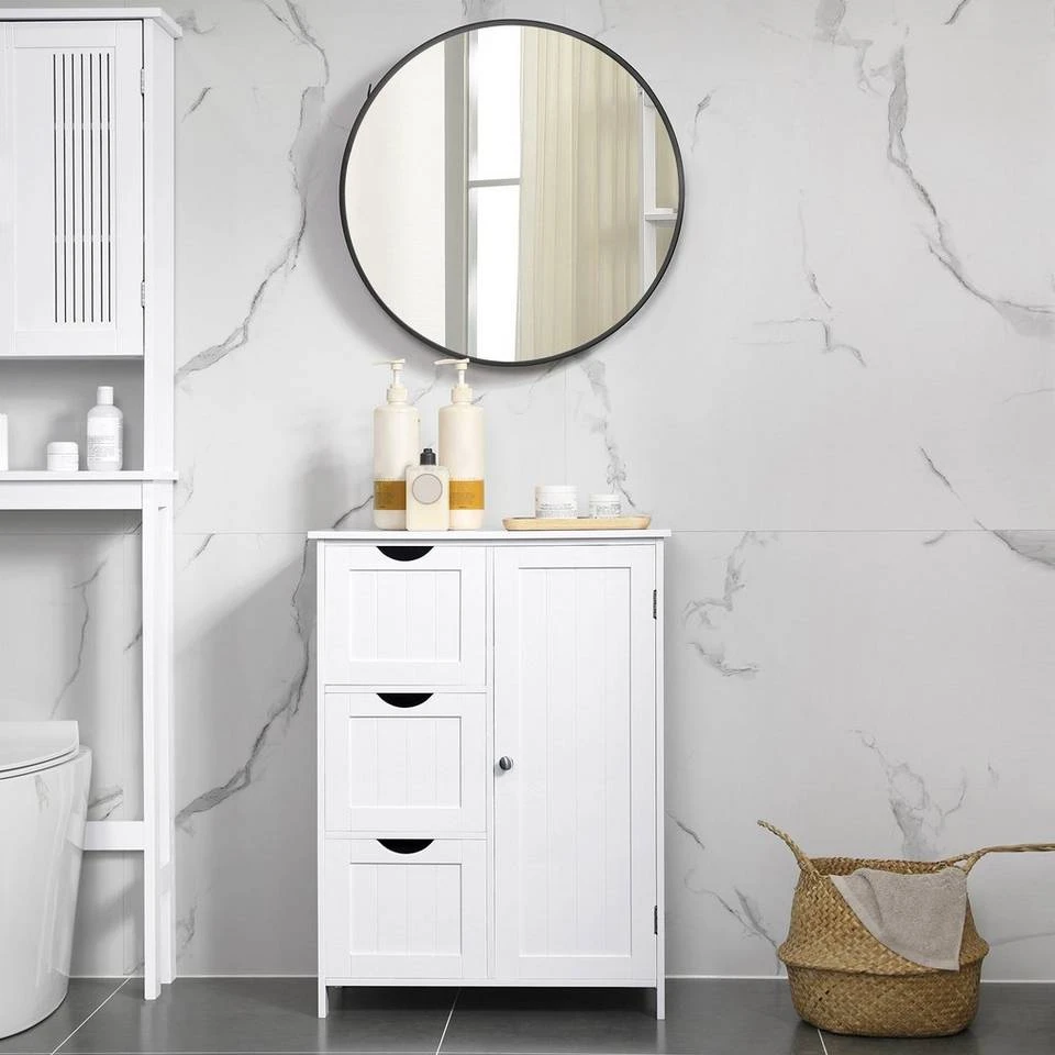 - AUCH GROßE BADUTENSILIEN PASSEN HINEIN: Die Regalebene hinter der Schranktür ist auf 3 unterschiedliche Höhen verstellbar. Platzieren Sie kleinere Flaschen in den 3 Schubladen