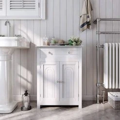 - FUNKTIONALITÄT UND ÄSTHETIK KOMBINIERT: Der Schrank im Landhausstil bietet genügend Stauraum und verleiht Ihrem Bade-/Wohnzimmer sowie der Küche einen natürlichen Charme