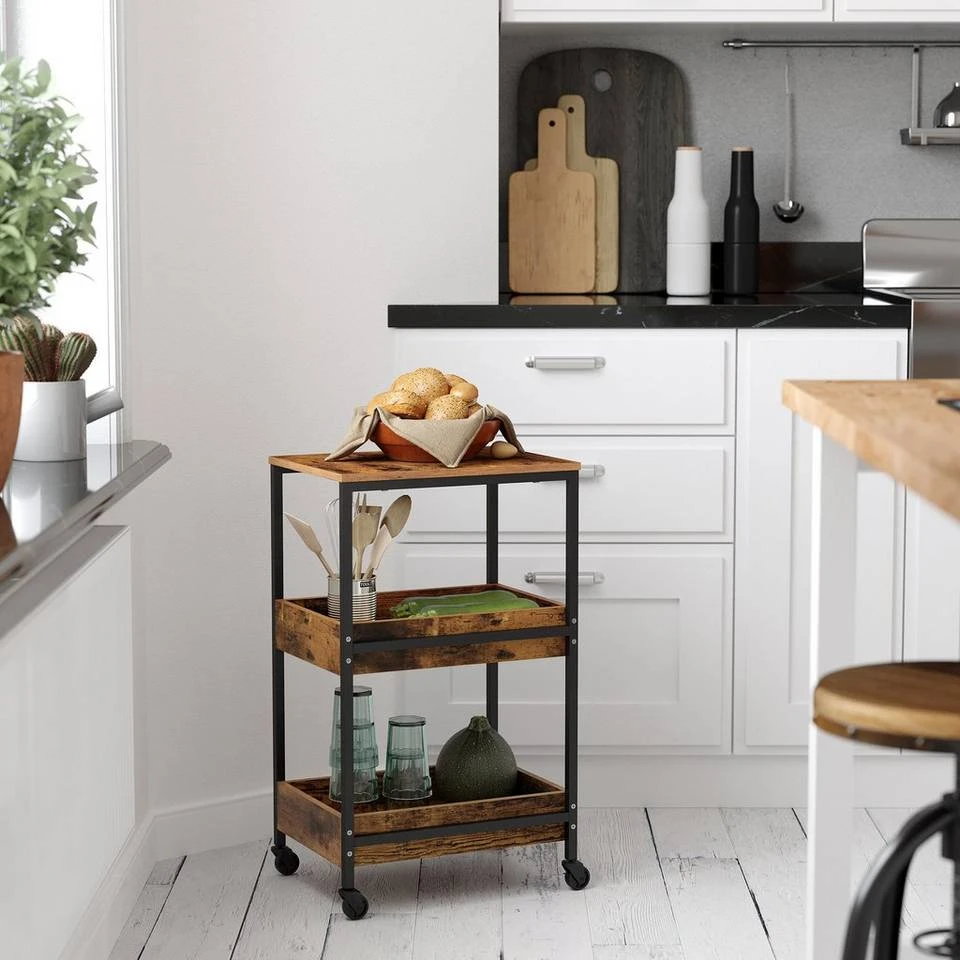 - Eine warme, rustikale Oberfläche mit schwarzem Stahlrahmen – Ein industrieller Schreibtisch steht bereit für eine entspannte und kreative Atmosphäre in Ihrem Büro