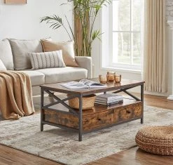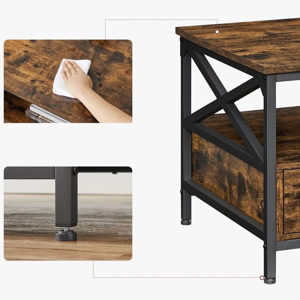 - Was Sie bekommen: Einen rustikalen Couchtisch, der Ihrem Wohnzimmer mehr Stil verleiht, mit verstellbaren Füßen und viel Stauraum, um Ihre Sachen zu verstauen