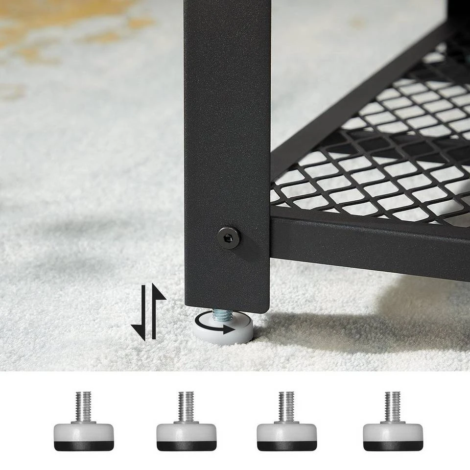 - Das Metallgitter im unteren Bereich dient als großzügige Ablage, die mit bis zu 40 kg belastet werden kann. Bücher oder findet Ihre Katze hier eine nette Schlafgelegenheit?