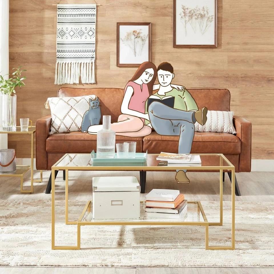 - Was Sie bekommen: Einen Couchtisch, der über 2 Glasablagen und ein goldenes Metallgestell verfügt, und eine Möglichkeit, Ihr Wohnzimmer zum Glänzen zu bringen.