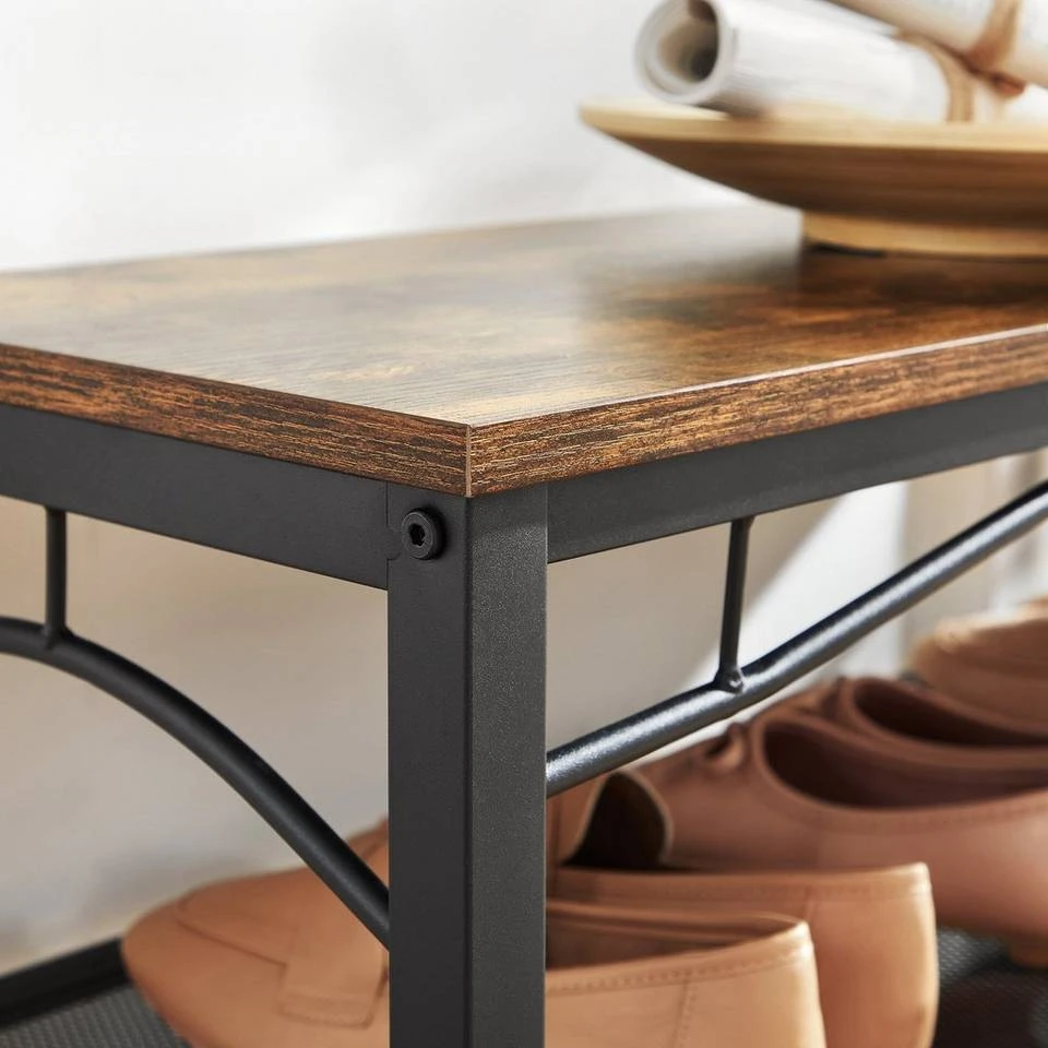 - Robuste Metallrohre mit matter Oberfläche und Holzspanplatten (E1 Klasse) im Vintage-Stil machen die Schuhbank stark und stabil. Die Holzablage ist bis 100 kg belastbar