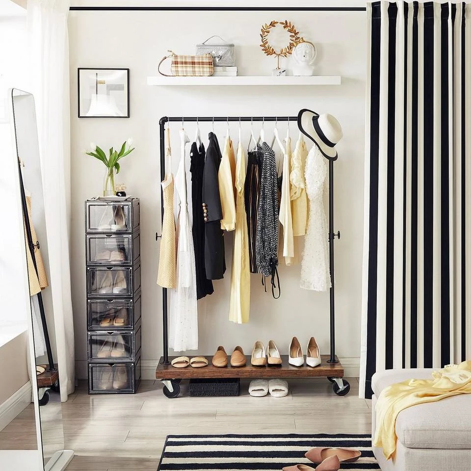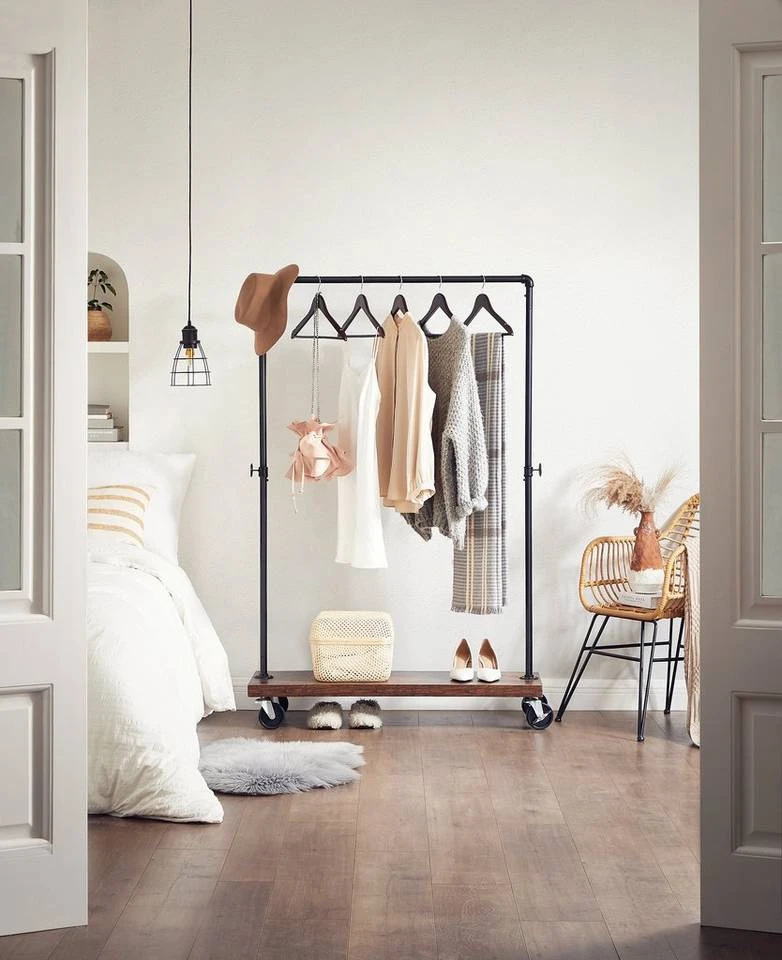 - Auf Rollen: Rollen Sie einfach diesen Kleiderständer neben Ihren Spiegel, um das perfekte Outfit zu finden. 2 Bremsen sorgen dafür, dass der Garderobenständer nicht wegrollt
