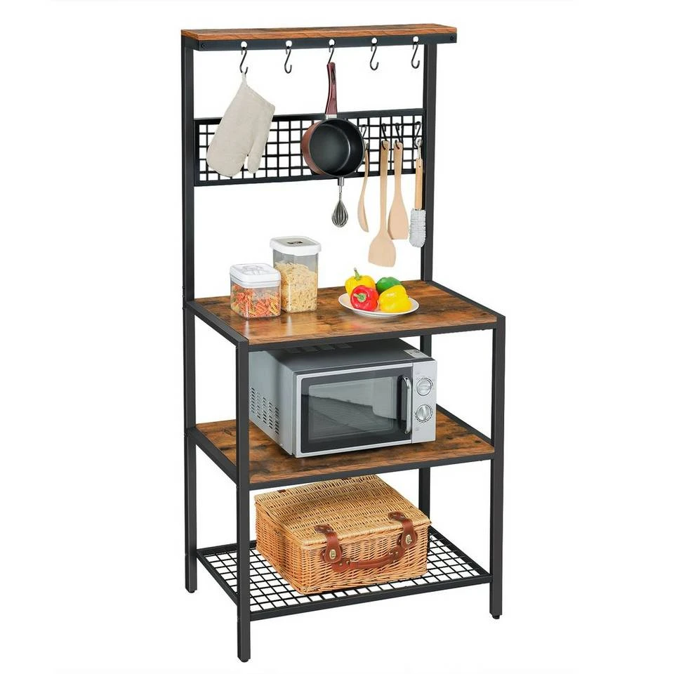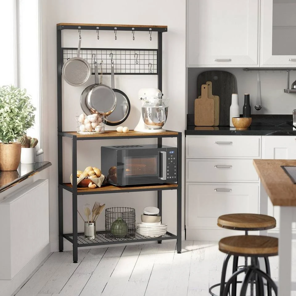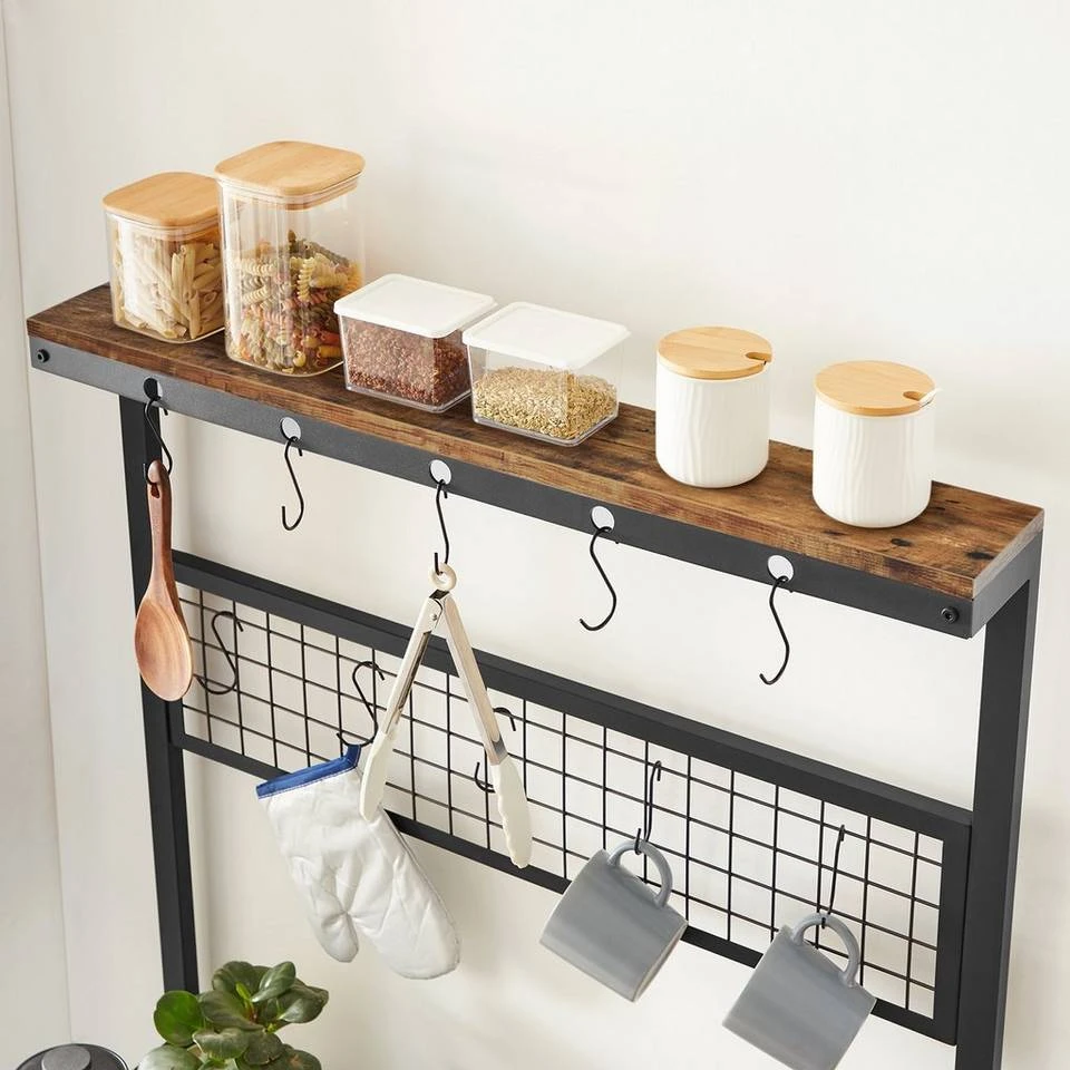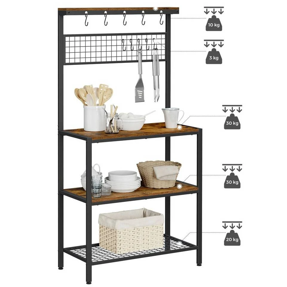 - Dank des robusten Eisengestells und der 15 mm dicken Holzspanplatten ist dieses Regal stark genug, um hierauf alle wichtigen Küchenutensilien unterzubringen