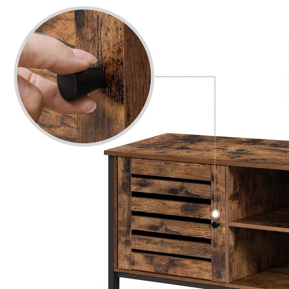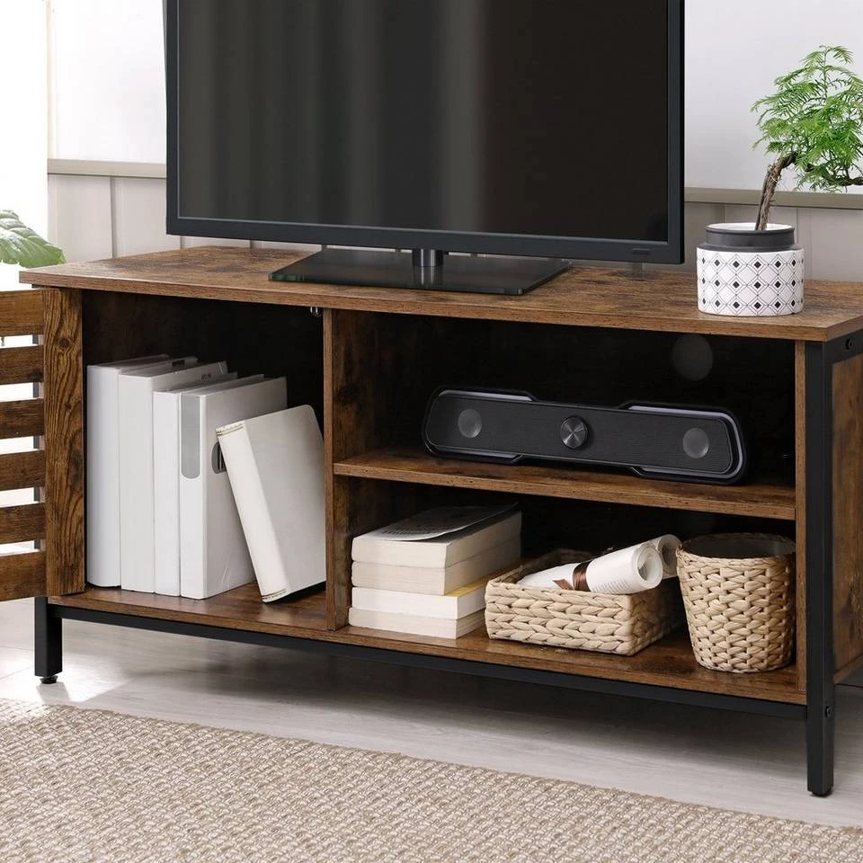 - Die warme Vintagenote, das schwarze Metallgestell und die auffällige Lamellentür dieses TV-Schranks sind Balsam für Ihre Seele und auch für Ihre Augen
