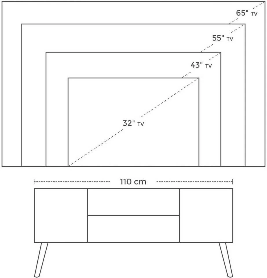 - Mitgeliefert werden sowohl Bodenschutz-Pads als auch Rückwandverbinder für die Hinterseite des TV-Schranks