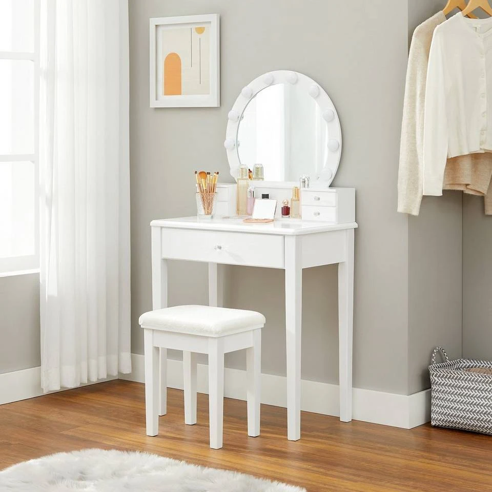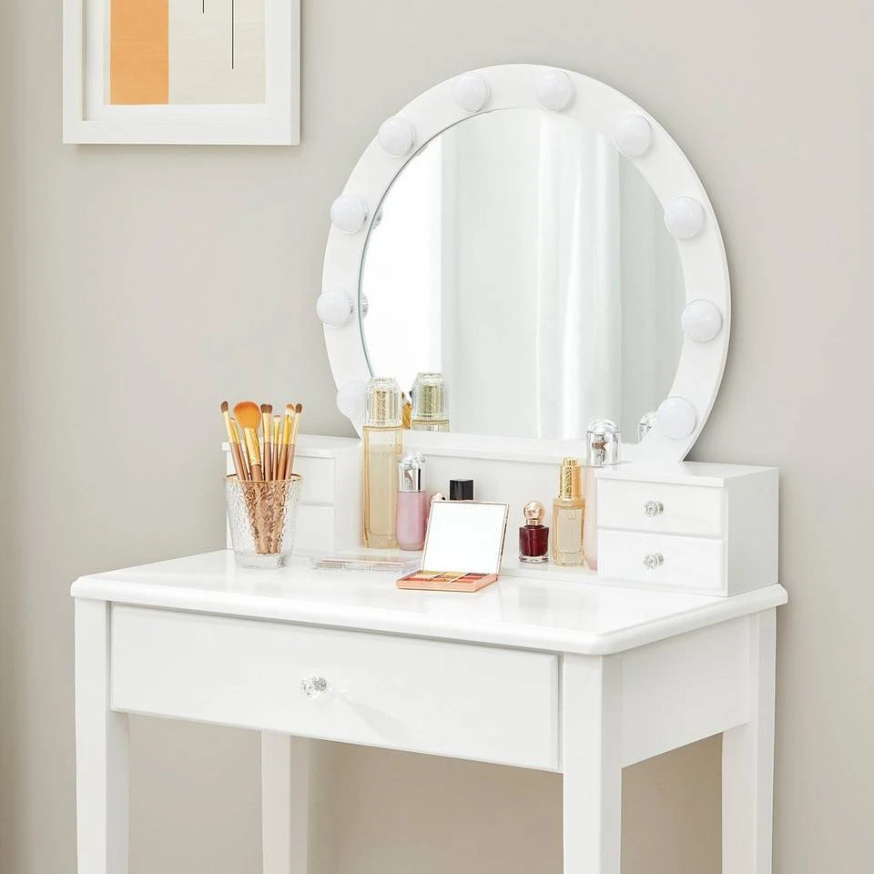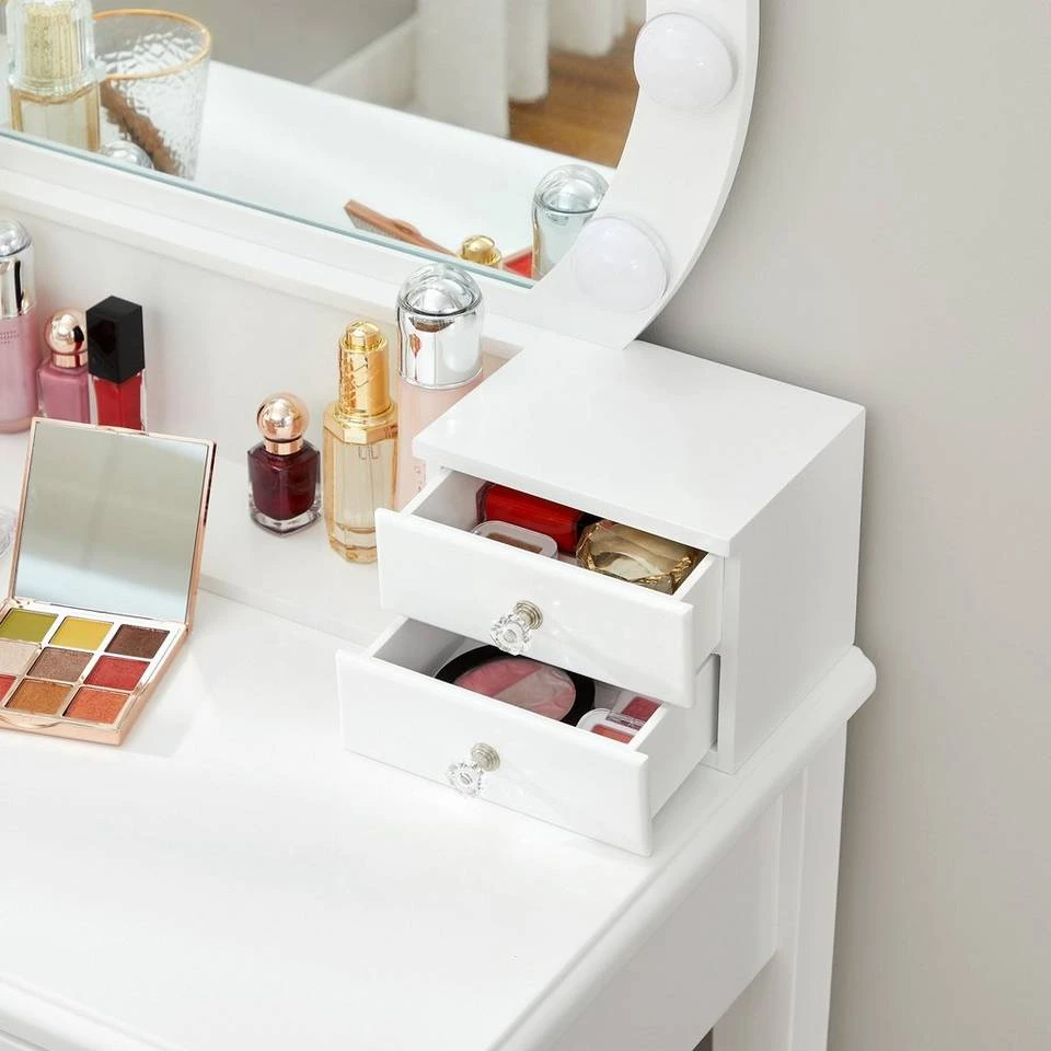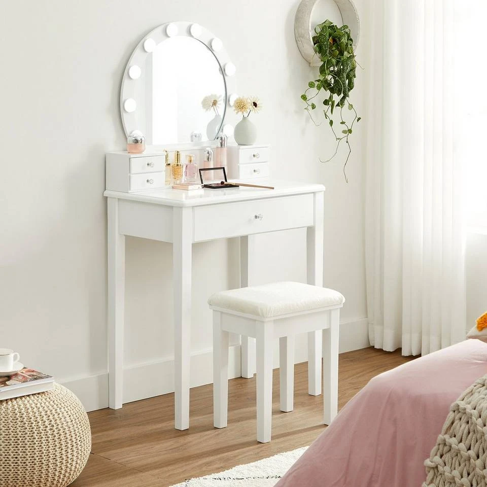 Erleichtern Sie Ihre morgendliche Routine: Sie müssen nicht mehr das ganze Haus auf den Kopf stellen, um den Lippenstift zu finden, der Ihr Make-up vervollständigt! Setzen Sie sich auf den bequemen, gepolsterten Hocker und bedienen Sie sich ganz einfach an den gut geordneten Make-up- und Hautpflege-Produkten auf dem Schminktisch. Von nun an ist jeder Morgen wunderbar.