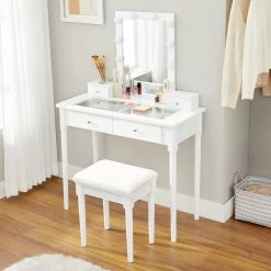- Die 10 Glühbirnen dieses Kosmetiktisches lassen Sie in hellem Licht erstrahlen. Bereiten Sie sich auf Ihren nächsten Auftritt vor und setzen Sie sich perfekt in Szene
