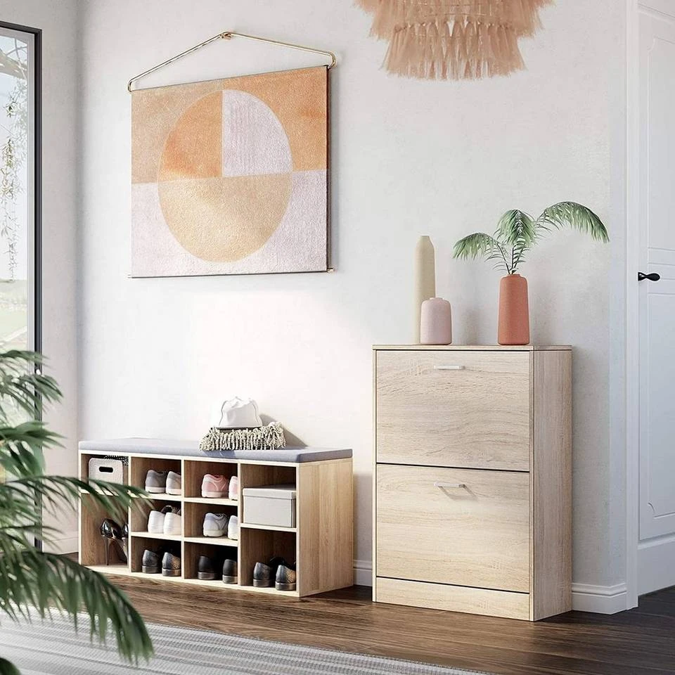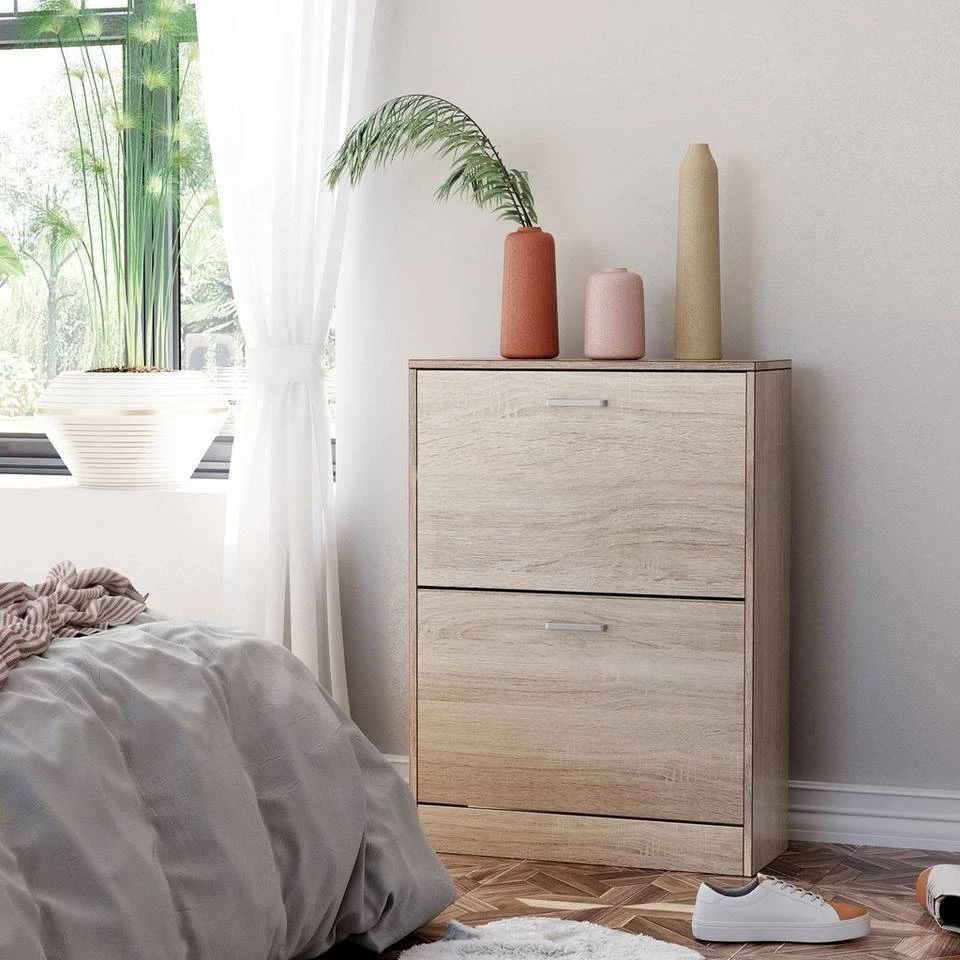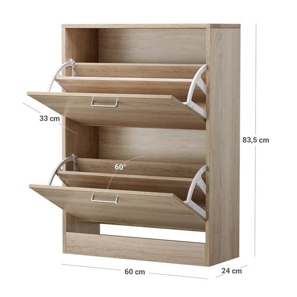 VASAGLE Schuhschrank »LBC602H LBC02WT« Schuhkommode, Trennwände verstellbar und abnehmbar, für 12 Paar Damenschuhe oder 8 Paar Herrenschuhe Eichefarben, Weiß