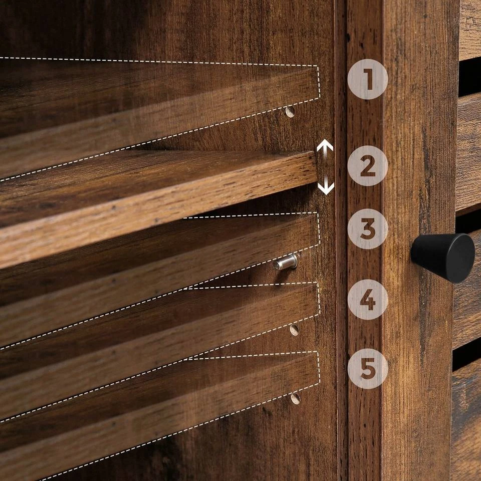 - Dank der großzügigen Abstellfläche, 1 großen offenen Regalebene, 2 offenen Fächern und 2 verstellbaren Regalböden, die sich hinter den klassischen Lamellentüren verstecken